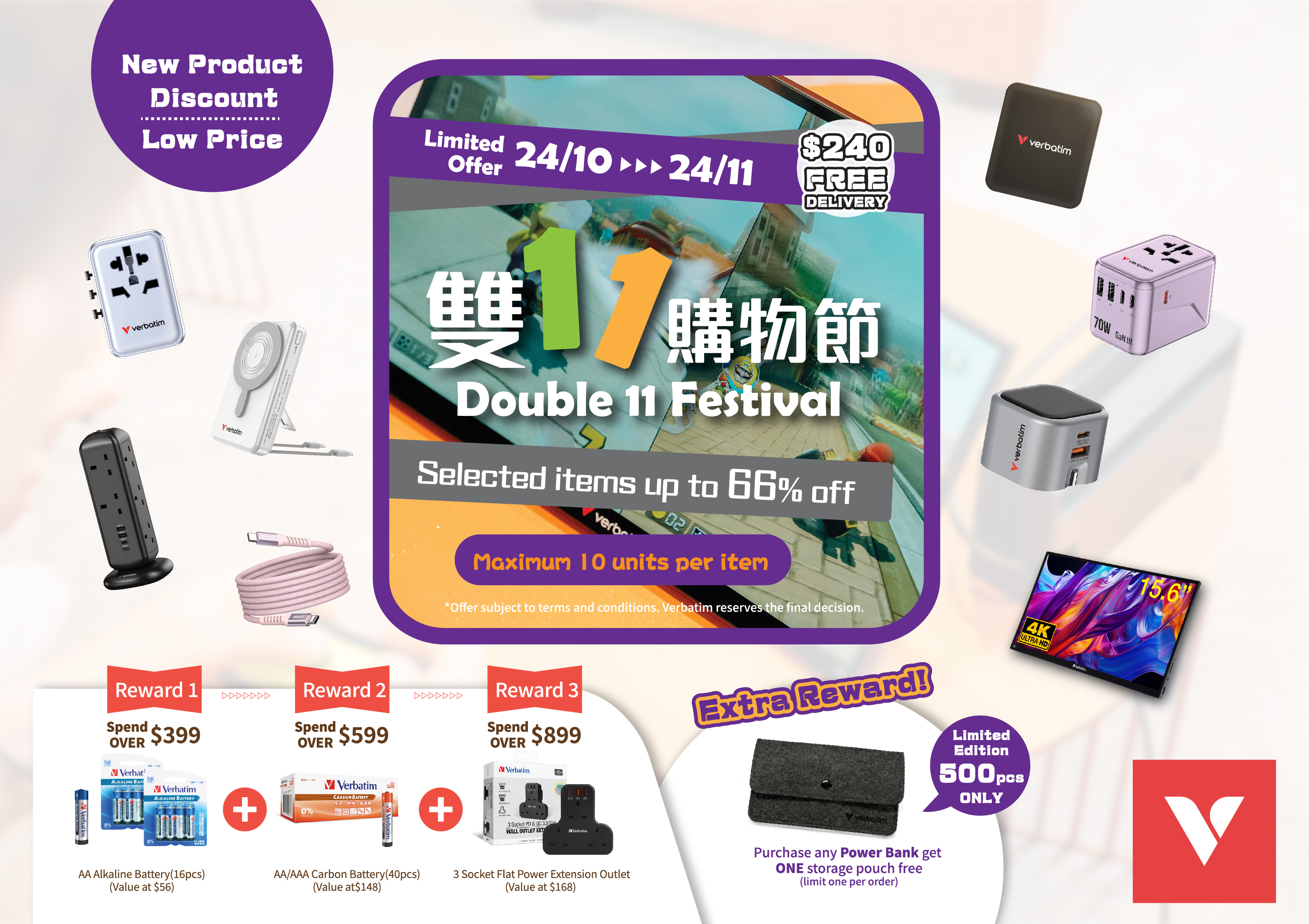 ⭕購物滿HK$399,即送Verbatim 5000mAh流動充電池連精美收納袋一個(顏色隨機|每單訂單限一件)
