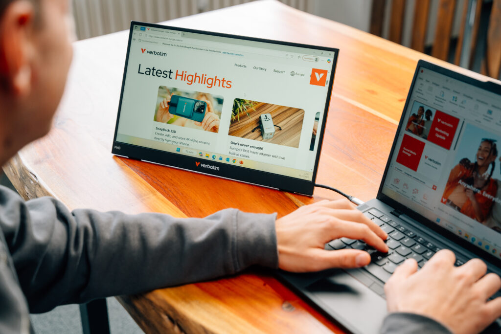 專為專業人士與自由工作者設計,LIGHT 系列顯示器兼容多種裝置,包括 Windows PC、Mac、智能手機與遊戲機。無論是需要雙螢幕工作環境,或是遊戲機的輕巧顯示器,Verbatim 便攜式顯示器都能勝任,是旅行或居家使用的實用選擇。