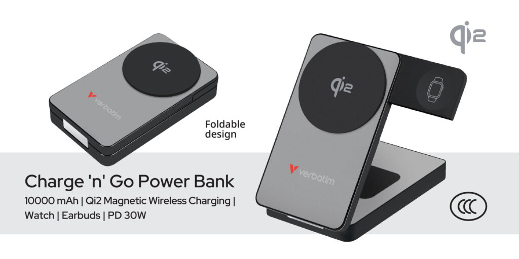 - Verbatim Charge ‘n’ Go 3-in-1 Qi2 Magnetic Wireless Power Bank 10000 mAh